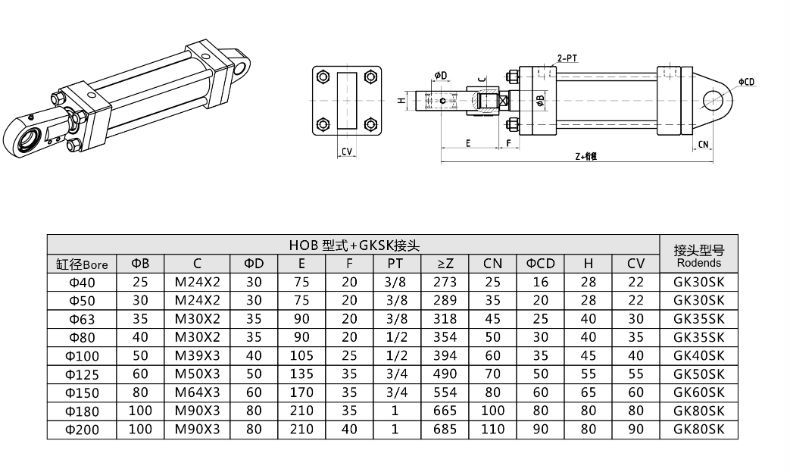 標準HOB+CA型 單耳型+GKSK關(guān)節(jié)耳環(huán)接頭外形安裝尺寸圖