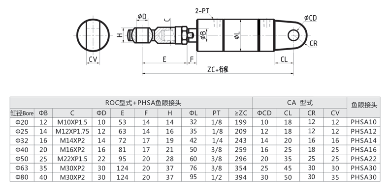 標(biāo)準(zhǔn)ROC型 單耳型+PHSA魚眼接頭外形安裝尺寸圖