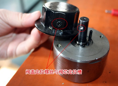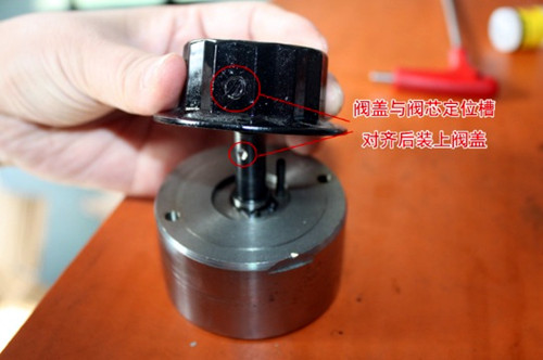 b.閥蓋的定位螺絲與閥芯的定位槽對(duì)齊后,安裝上