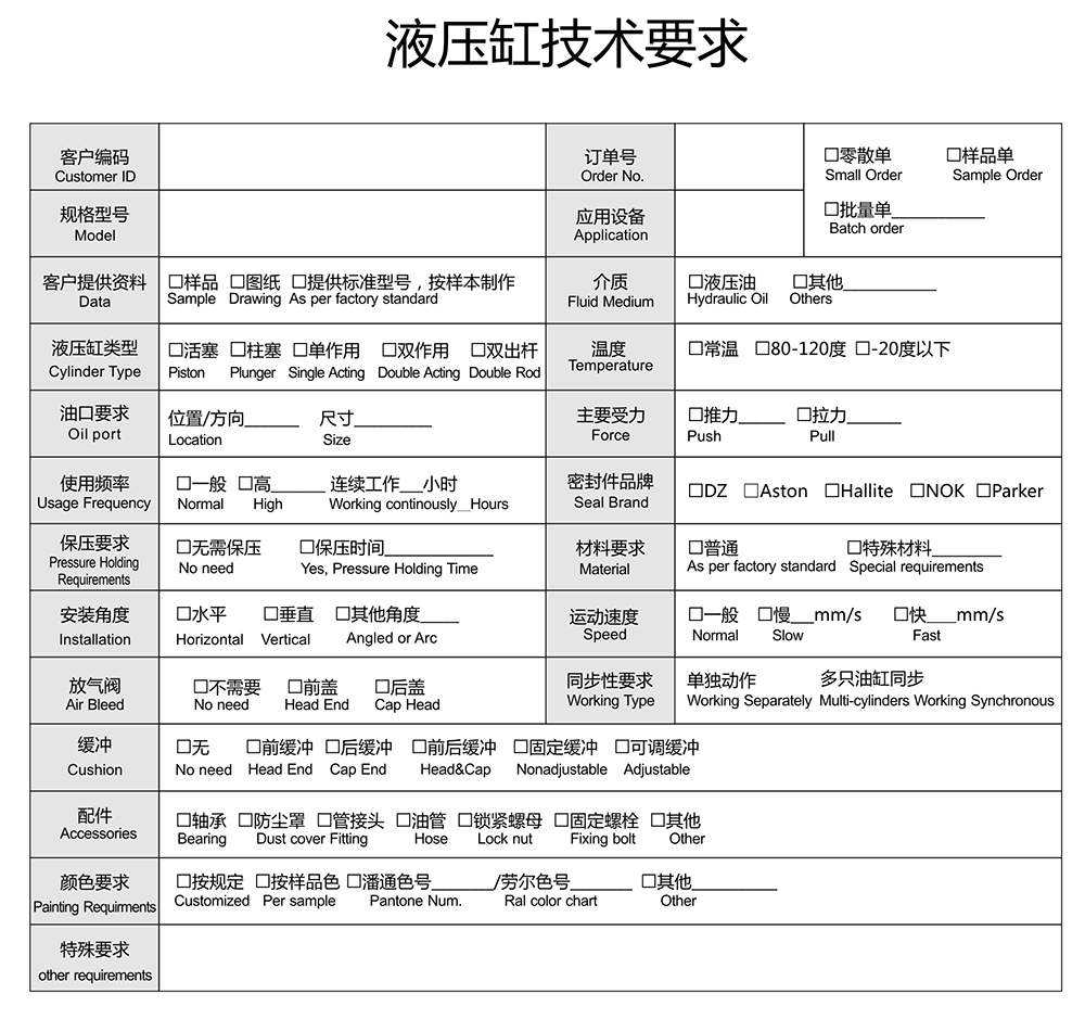 3、您填寫(xiě)《液壓缸技術(shù)要求》做最終報(bào)價(jià)確認(rèn)。