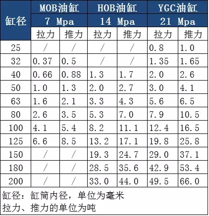 MOB拉桿油缸有定位臺(tái)階,HOB與YGC/YGD油缸無定位臺(tái)階。